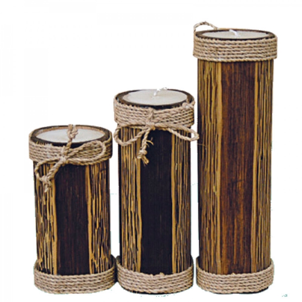 798331 Σετ 3 Κεριά Μπαμπού με Σχοινί