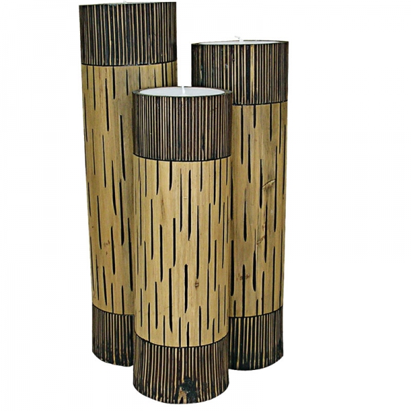 798334 Σετ 3 Κεριά Μπαμπού με Γραμμές