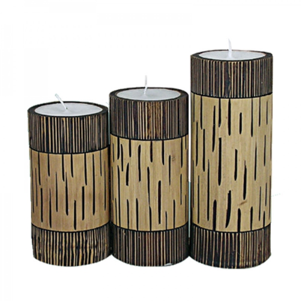 798336 Σετ 3 Κεριά Μπαμπού με Γραμμές