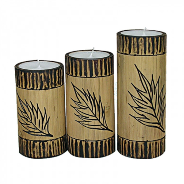 798337 Σετ 3 Κεριά Μπαμπού με Φύλλο